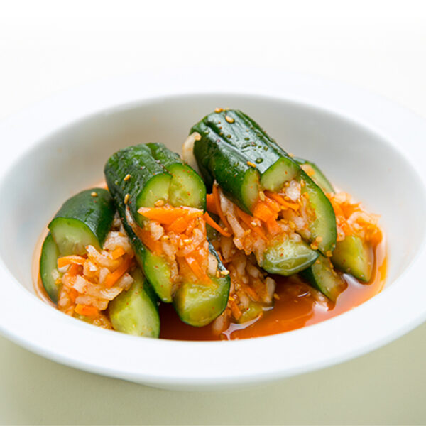 きゅうりの中に大根、人参、ニラをはさんだオイキムチ。