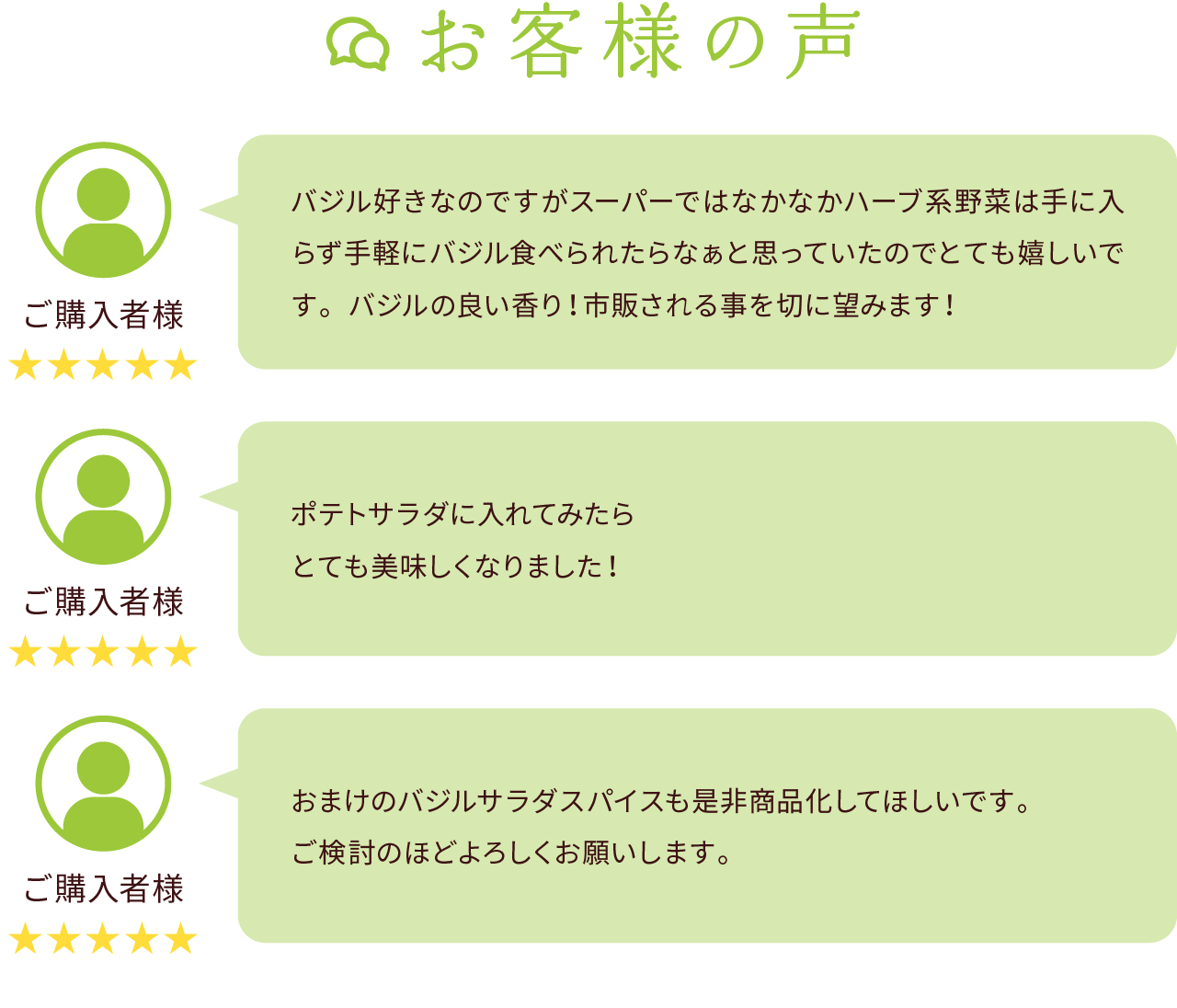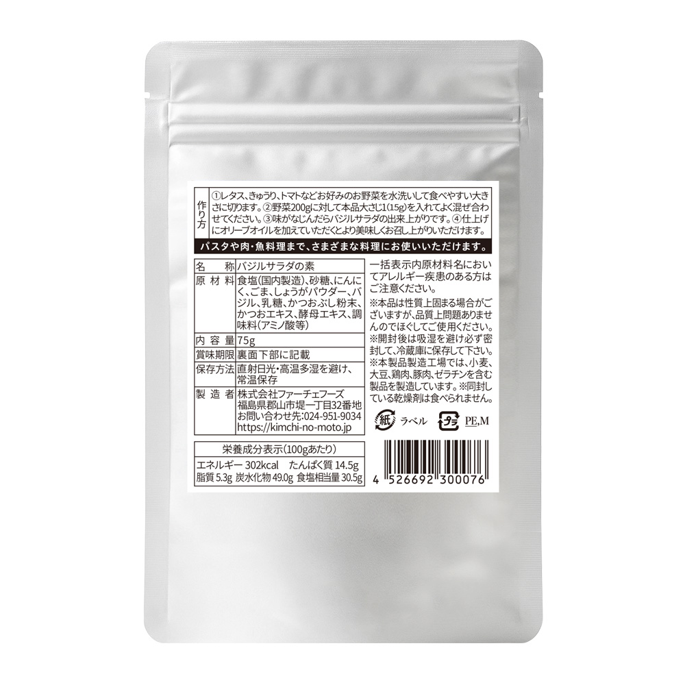 そのノウハウを生かし作られた『バジルサラダの素』是非ご賞味ください。