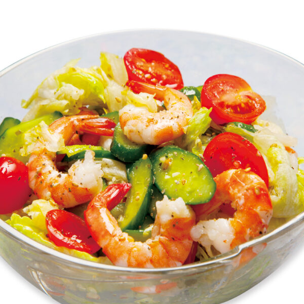 レタス、きゅうり、トマトなど、お好みの野菜を食べやすい大きさに切り、本品を入れてよく混ぜ合わせます。